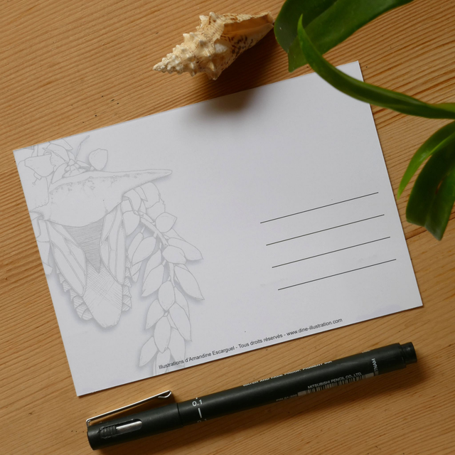 Un ensemble des 3 cartes postales inspirées des œuvres originales à l'aquarelle et à l'encre "Atoumo", "Ylang" et "Lotus bleu".