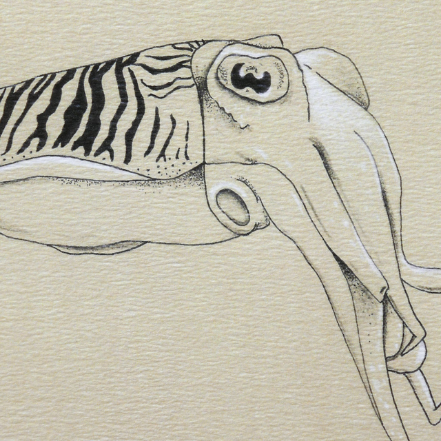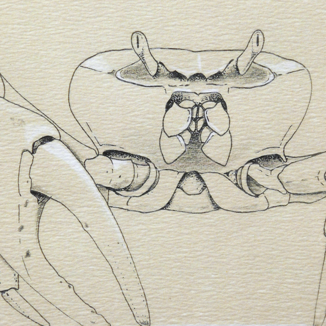 Un ensemble de 3 reproductions taille réelle des œuvres originales à l'encre et au crayon de couleur "Crabe", "Seiche" et "Nautile".